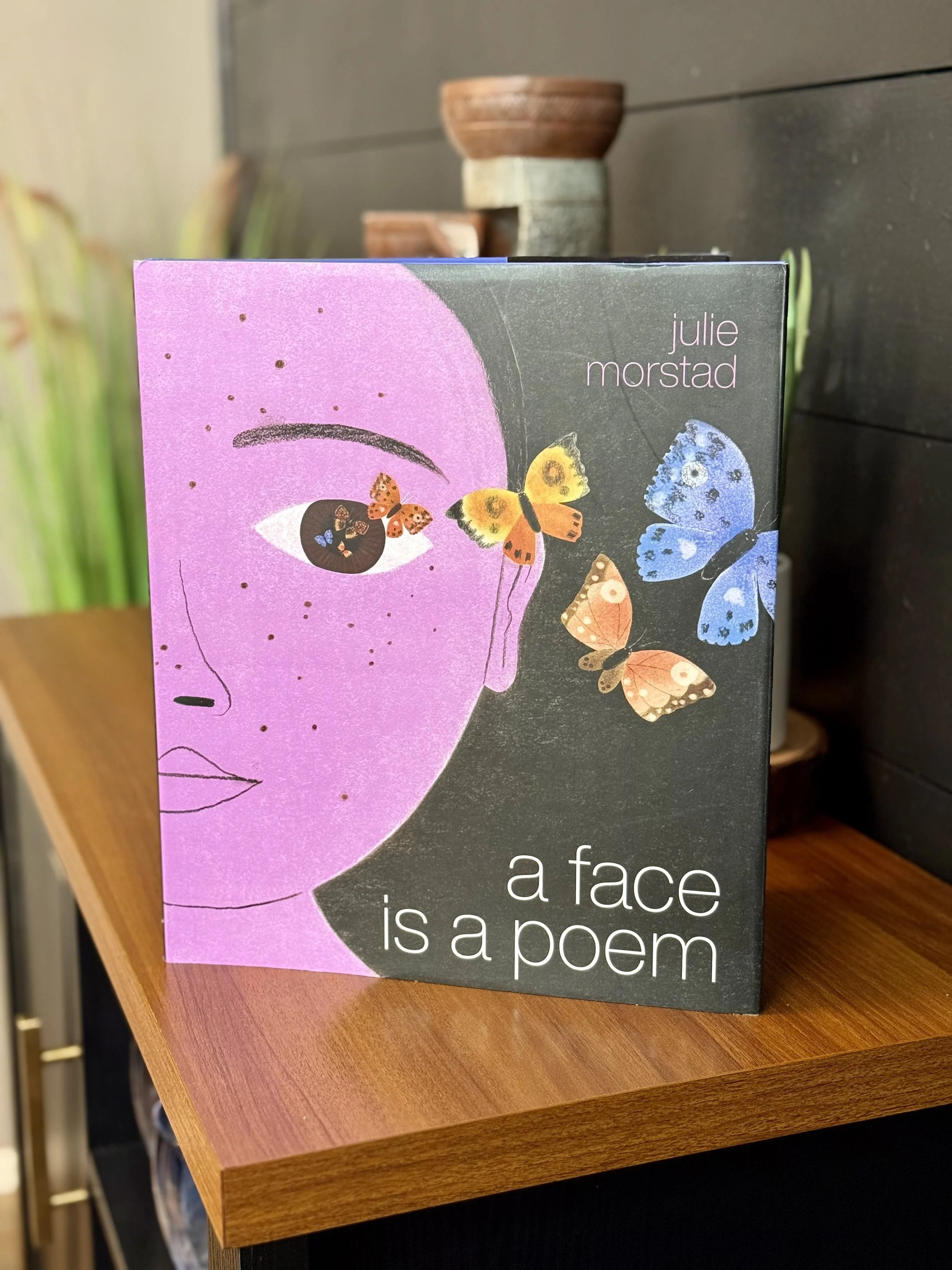 Julie Morstad’s picture book A Face is a Poem offers readers a playful and poetic way of seeing something familiar—our own faces. Instead of describing features literally, Morstad leans on metaphor: freckles as sprinkles, flowery faces, faces that you find in the clouds. Each page invites readers to view the ordinary as extraordinary. I actually paused in the bookstore when I saw the cover of this book because the colors and imagery were so beautiful.