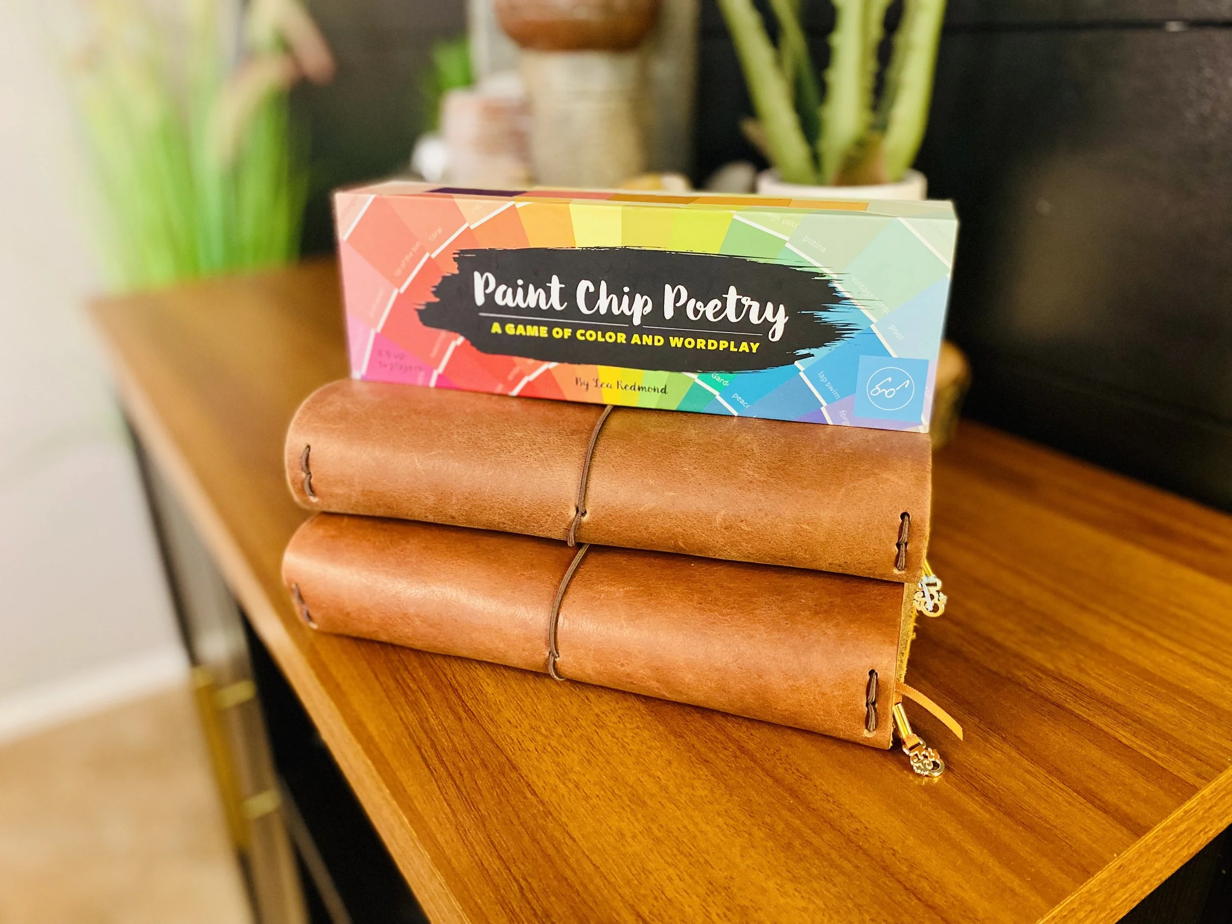 Our daughter’s favorite part of a trip to Lowe’s is walking through the garden section to see the flowers and collecting a stack of “rainbows”—color paint sample cards. After one of these trips, I remembered that I had a writing prompt kit called Paint Chip Poetry. This little box includes a wide variety of colors, each paired with a word or phrase, along with prompts to spark ideas. There’s something magical about color—how a single shade can evoke a memory, tell a story, or capture the essence of a season. When we combine that sensory experience with the power of words, we open up an entirely new pathway to creativity.