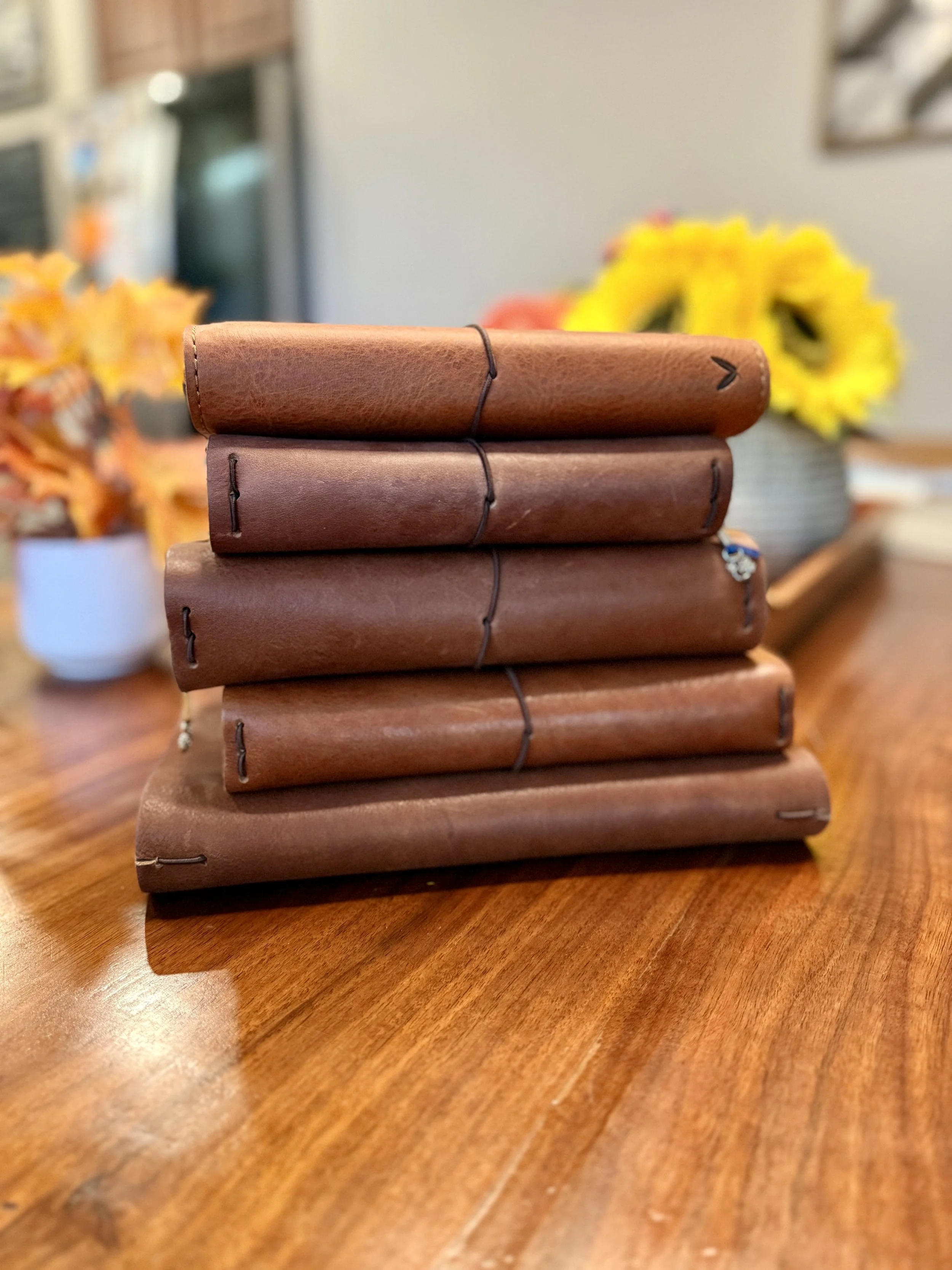 Style-There are a variety of styles you can get in each cover and leather collection. Most of my covers are considered “classic traveler notebook covers” where you can just have the cover and the closure. Only my Weeks folio has cascade pockets and holds the covers of a notebook without an elastic.