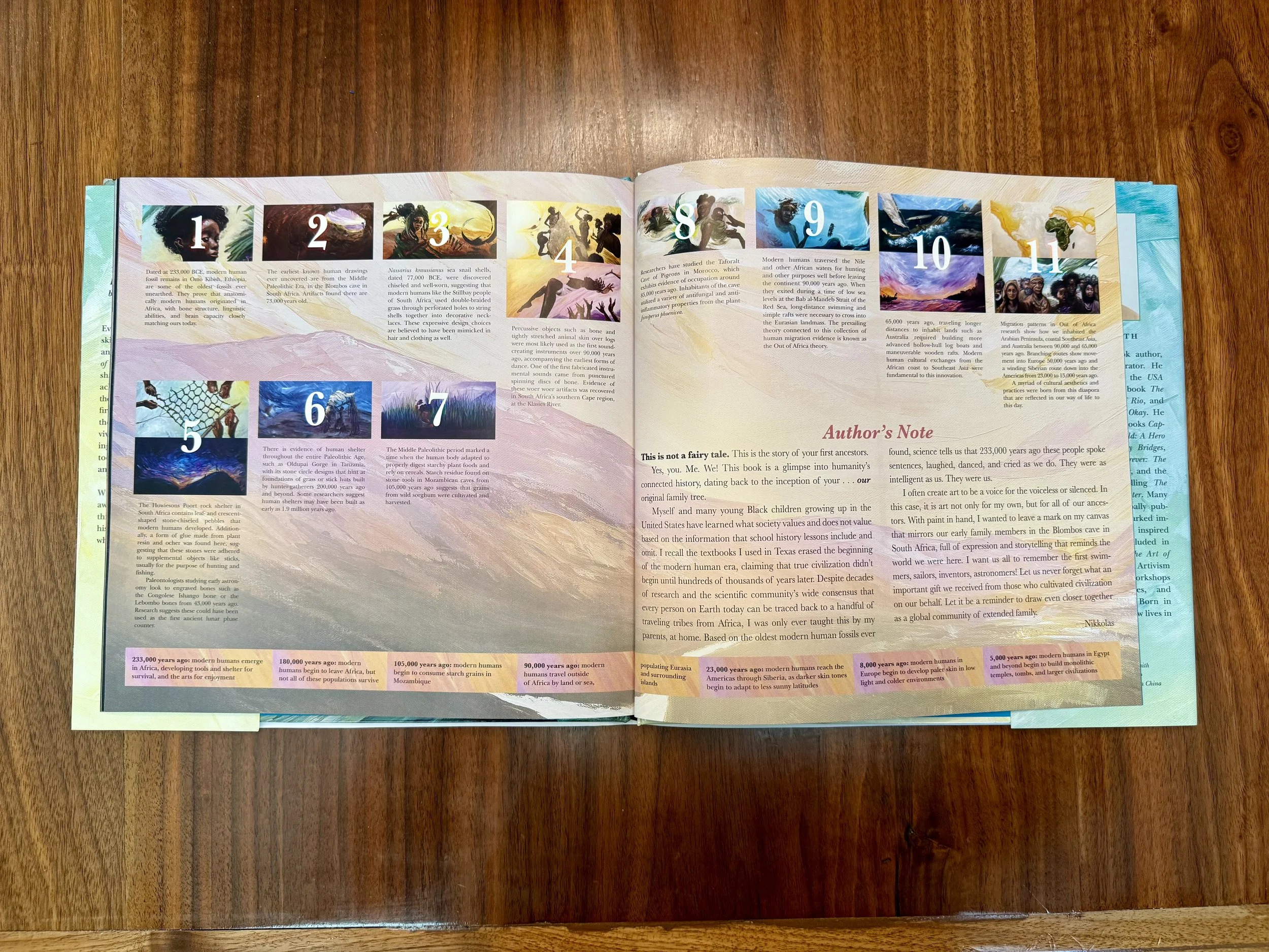Art: Create a visual timeline of human cooperation and creativity inspired by Smith’s illustrations.