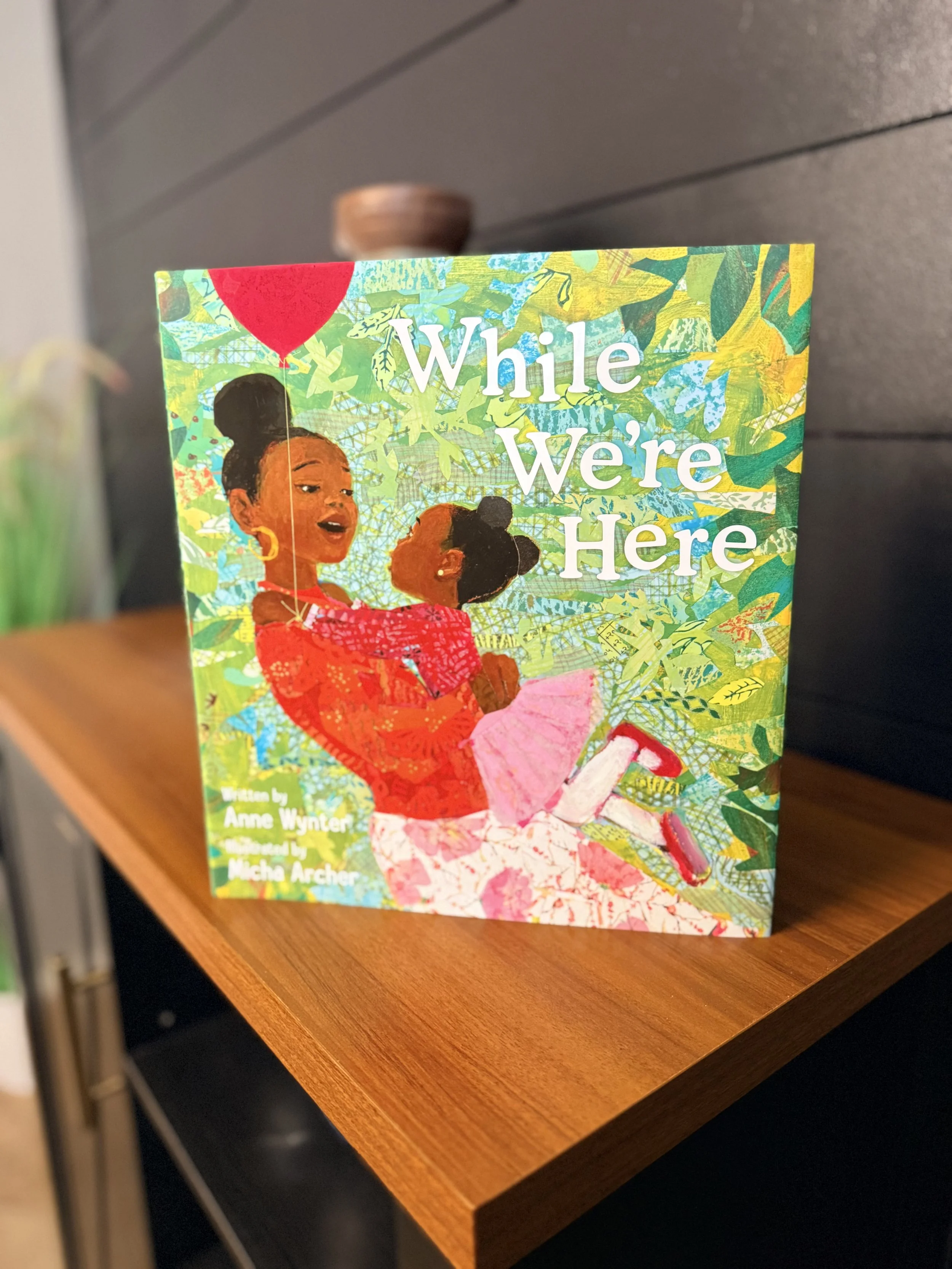 While We’re Here by Anne Wynter, with illustrations by Micha Archer, invites readers into a quiet, reflective space centered on a simple but powerful idea: we are here, together, in this moment. Through rhythmic language and layered, collage-style artwork, the book explores what it means to exist alongside others—humans, animals, and the natural world—right now. A striking message for anyone; however, anyone in a caretaker role will truly appreciate the images of slowing down and being with our kids in the everyday moments.