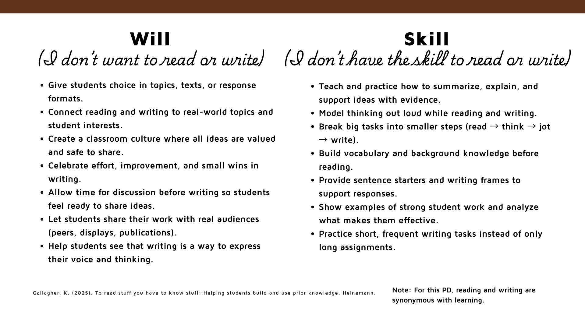 Gallagher, K. (2025). To read stuff you have to know stuff: Helping students build and use prior knowledge. Heinemann.